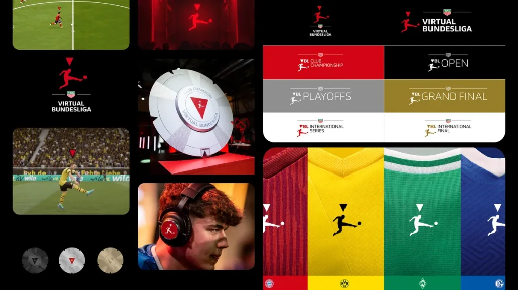 eスポーツ部門「バーチャルブンデスリーガ」では、FIFAのUIから着想を得た三角形モチーフを採用し、ゲーム文化との接続を可視化した。この視覚言語は後年、EA Sports FCにも波及した。