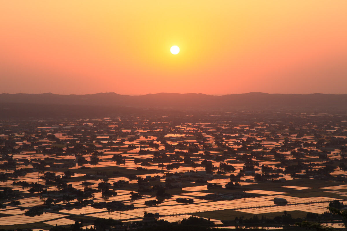 (冒頭写真:富山県・夕焼けに染まる砺波の散居村)