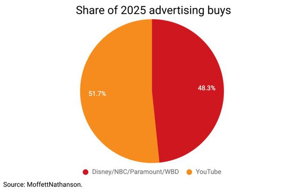 2025年のYouTube広告収入は前年から約40億ドル増加した。一方で、前述のハリウッド大手4社の広告収入を合計すると、前年から約30億ドルの減少が確認されたという。つまり広告費が、従来のテレビやスタジオ中心のメディアから、デジタル動画プラットフォームへ移行していることが明確になりつつある。
