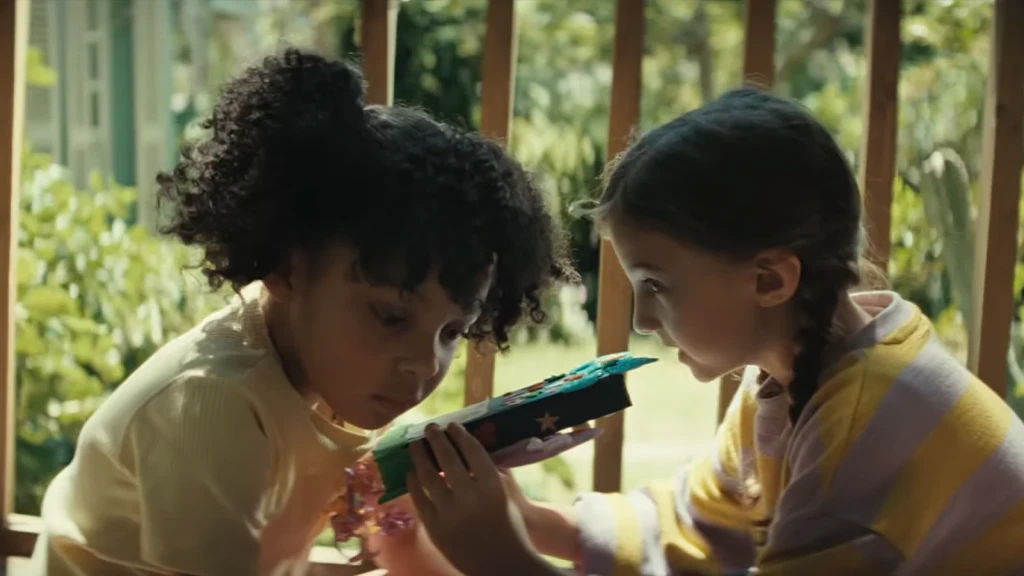映像は、親友同士の少女ミアとペイジの関係を軸に進む。引っ越しによる別れに直面したミアが、想像力を頼りに“空のGalaxyの箱”を特別な存在へと変え、離れてもつながり続ける方法を見出そうとする物語である。遊びやごっこ遊びを通じて生まれる創造が、距離を超えた関係性を支える象徴として描かれている。