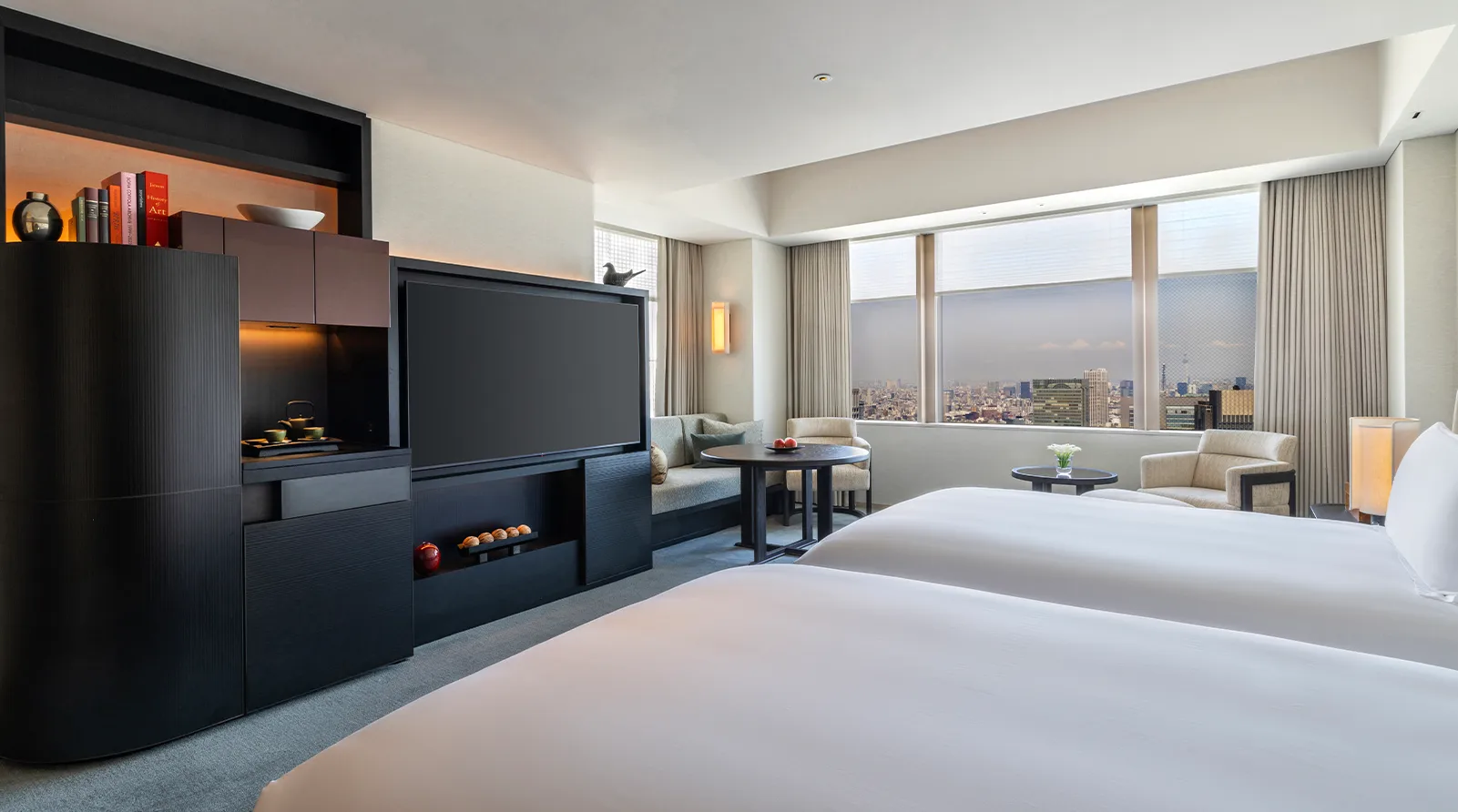 客室とスイートルームは大幅に再構築され、「より開放的でエレガント、かつ心地よさを重視したパーソナルラグジュアリー」を表現するデザインに一新された。従来のレイアウトを保ちつつも、玄関からベッドルーム、ドレッシングルームからバスルームまでの動線を柔らかくつなぎ、空間全体の一体感を高めている。