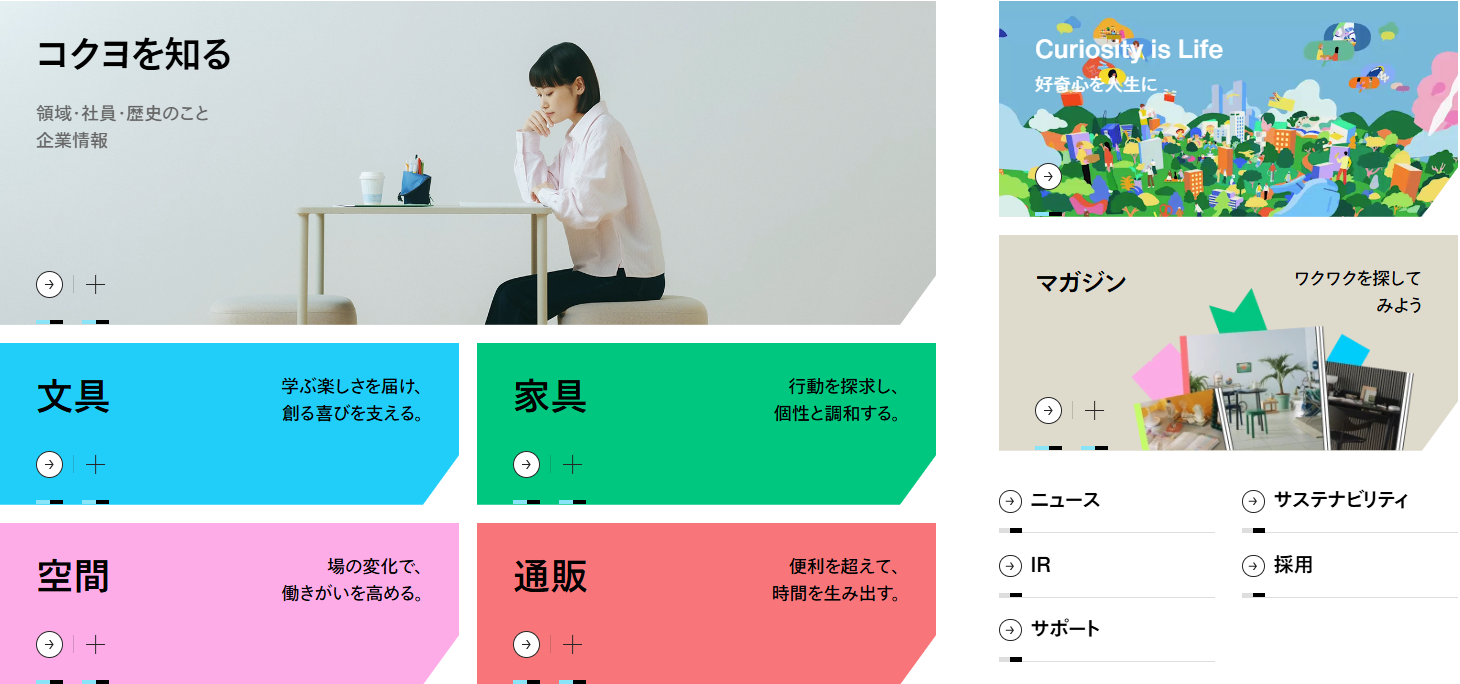 10月2日よりコーポレートサイト(https://www.kokuyo.com/)をフルリニューアル。コクヨの多岐にわたる事業を一つのサイトでわかりやすく俯瞰できる構成とし、働き方・学び方・暮らし方の知見を発信するオウンドメディア「コクヨマガジン」も開設。3Dモデルとインタラクティブアニメーションを用いた120周年コンテンツも公開する。